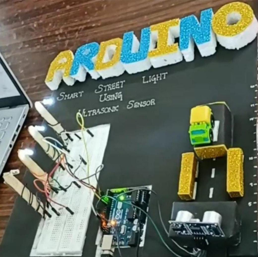 This project aims to create an energy-efficient street lighting system that automatically adjusts based on ambient light levels and presence detection. The Ultrasonic Sensor measures the presence of vehicles or pedestrians, while the LDR (Light Dependent Resistor) detects ambient light levels. When the sensors detect low light conditions and presence, the street light illuminates to ensure safety and visibility. Conversely, it dims or turns off during daylight or when no activity is detected, optimizing energy consumption. This smart solution enhances urban lighting efficiency and reduces electricity costs while promoting environmental sustainability.